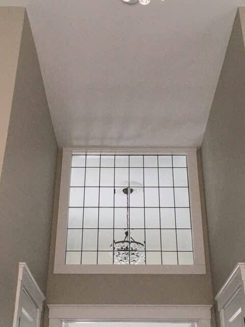 Clear stained glass skylight windows with a hint of blue, designed to let natural light shine through beautifully.
