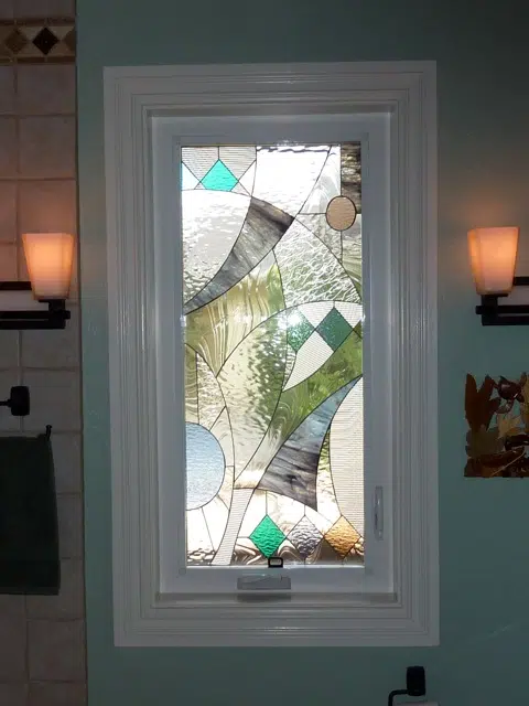 Abstract Geometric Window Installed Into A Vinyl Crank Out Frame