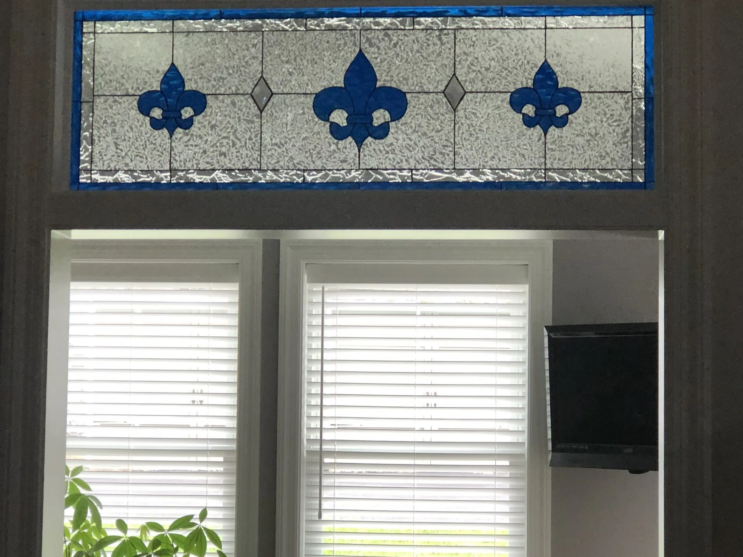 Beautiful ”Galway” Classic Fleur De Lis Stained Glass Transom Window