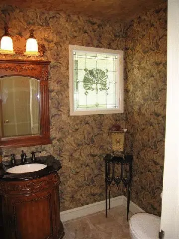 Beveled Shell Stained Glass Window Installed In A Bathroom