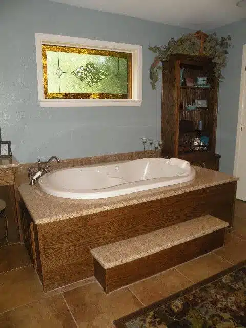 Classic Beveled Window Installed In A Bathroom Above Tub