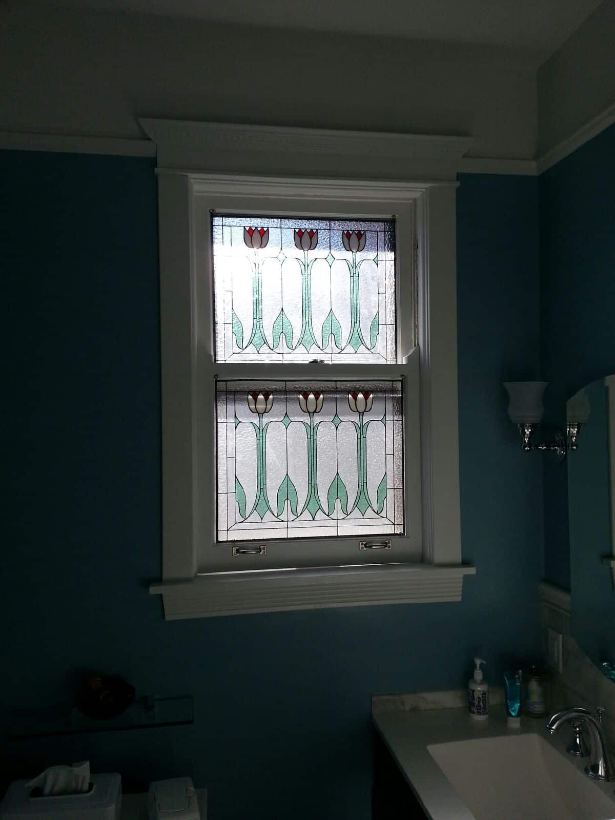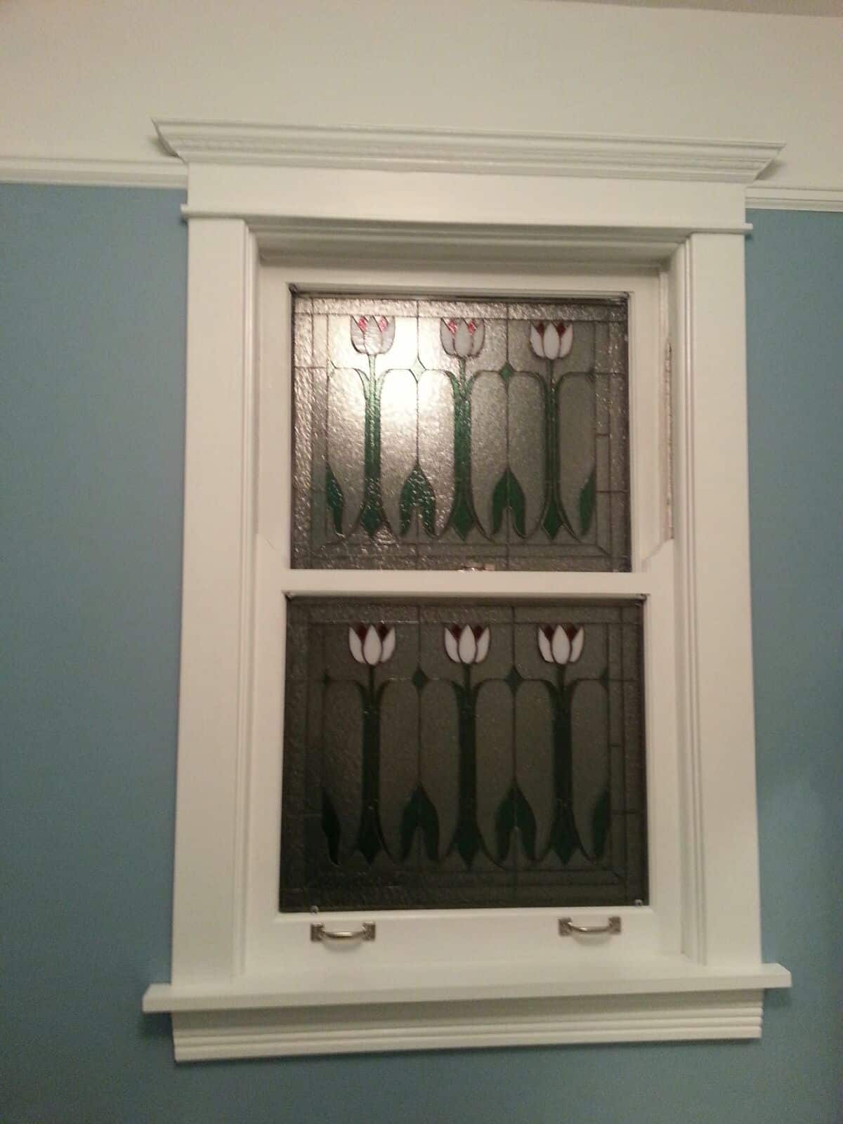 Classic English Tulips Double Hung Stained Glass Windows