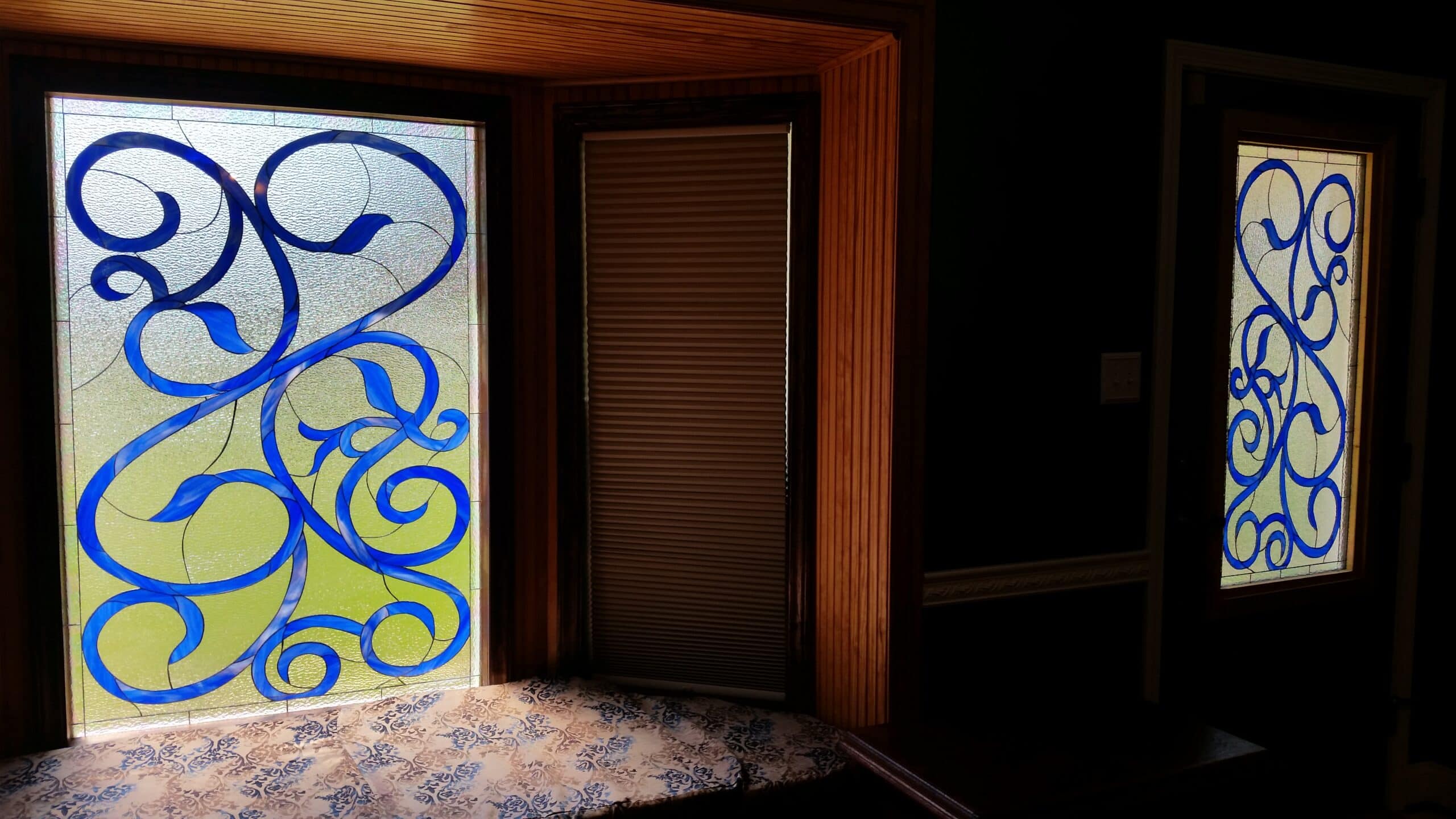 Exquisite Blue Scrolls Decorative Stained Glass Windows