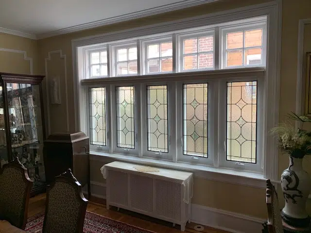 Five Classic Leaded Glass Windows Installed In A Living Room For Curb Appeal, Privacy And Beauty