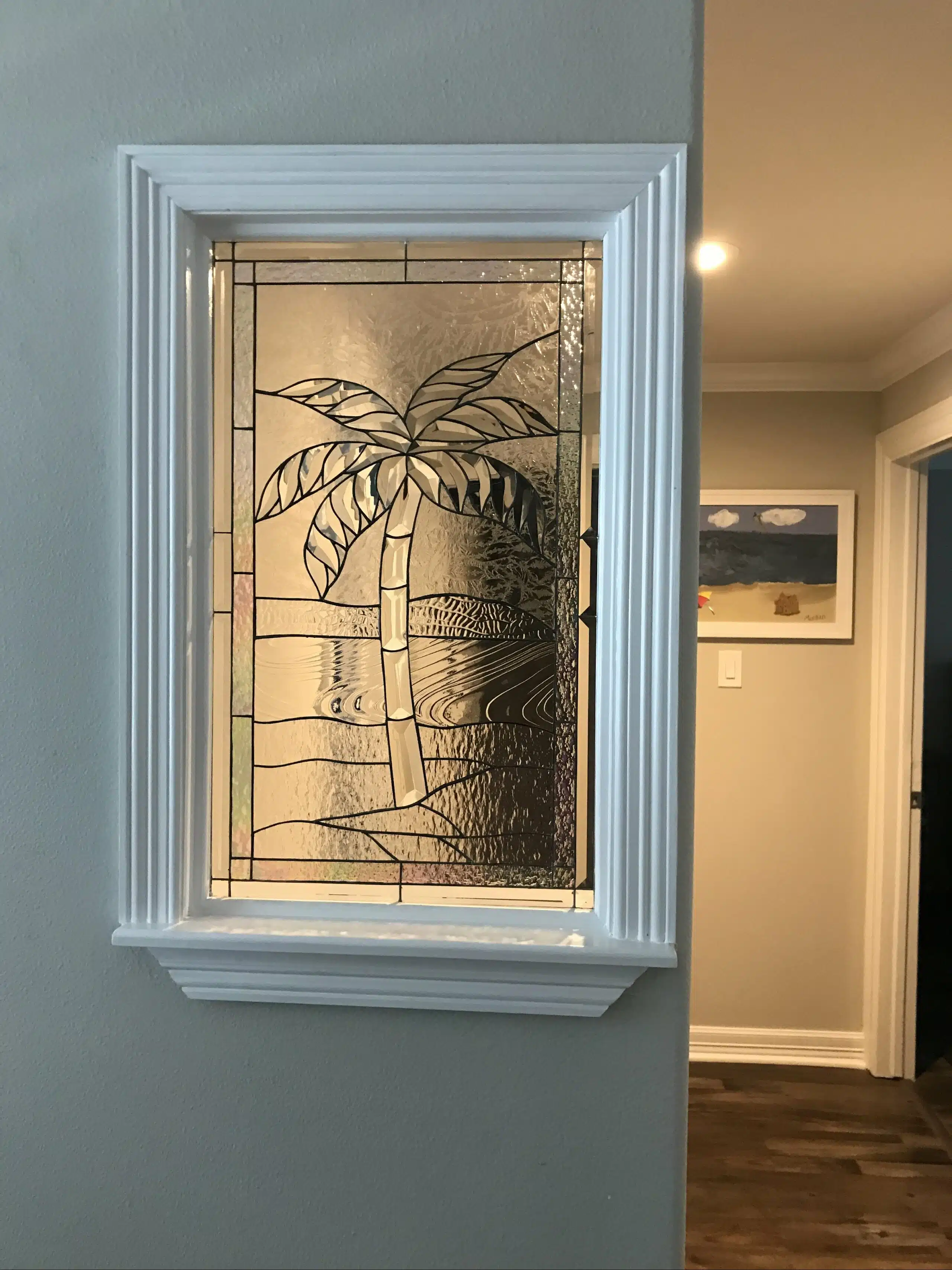 Lovely Triple Paned Beveled Palm Tree Used Within A Partition
