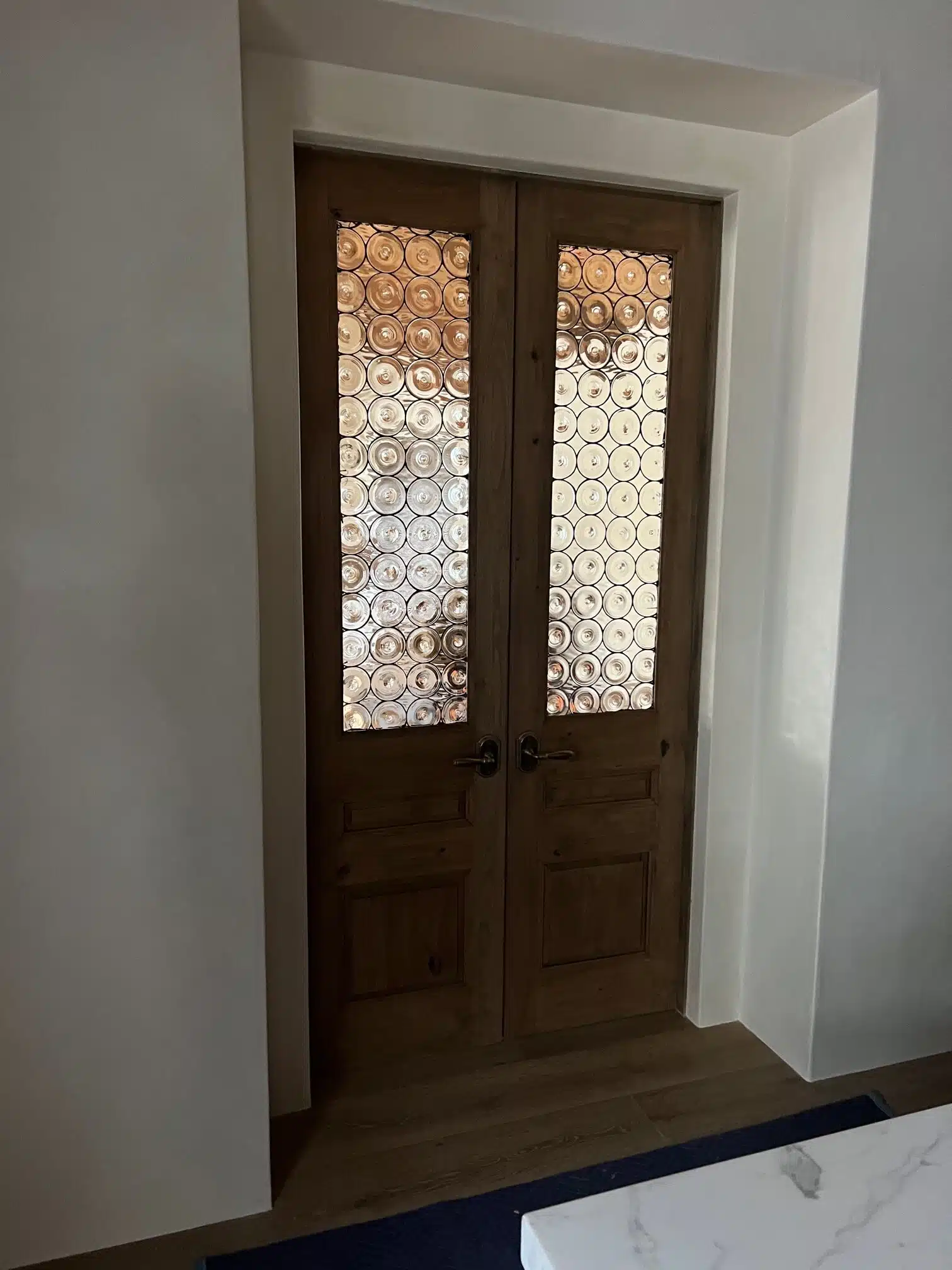 Single pane, Tiffany lead, Slear Rondel windows made for interior french doors