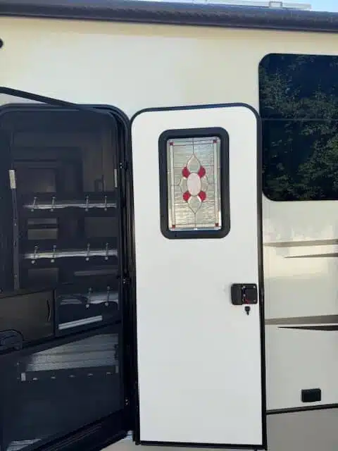 Stained Glass installed into Camper door