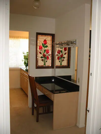 Stained Glass Rose Panel Used As A Room Divider In A Pony Wall