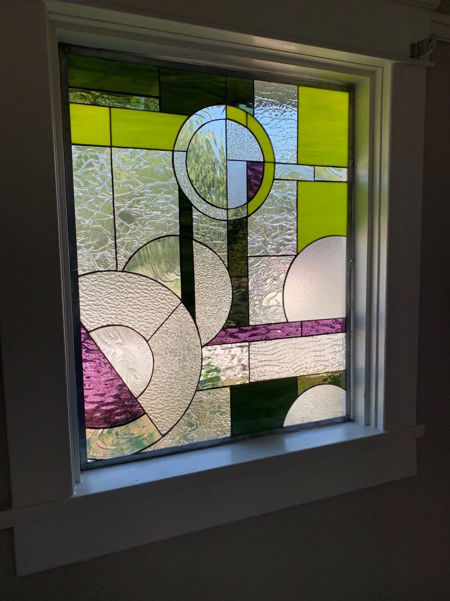 Our customer used Item # 10224 Lovely Abstract Circles” Viejo” Stained Leaded Glass Panel with Free Custom coloring.