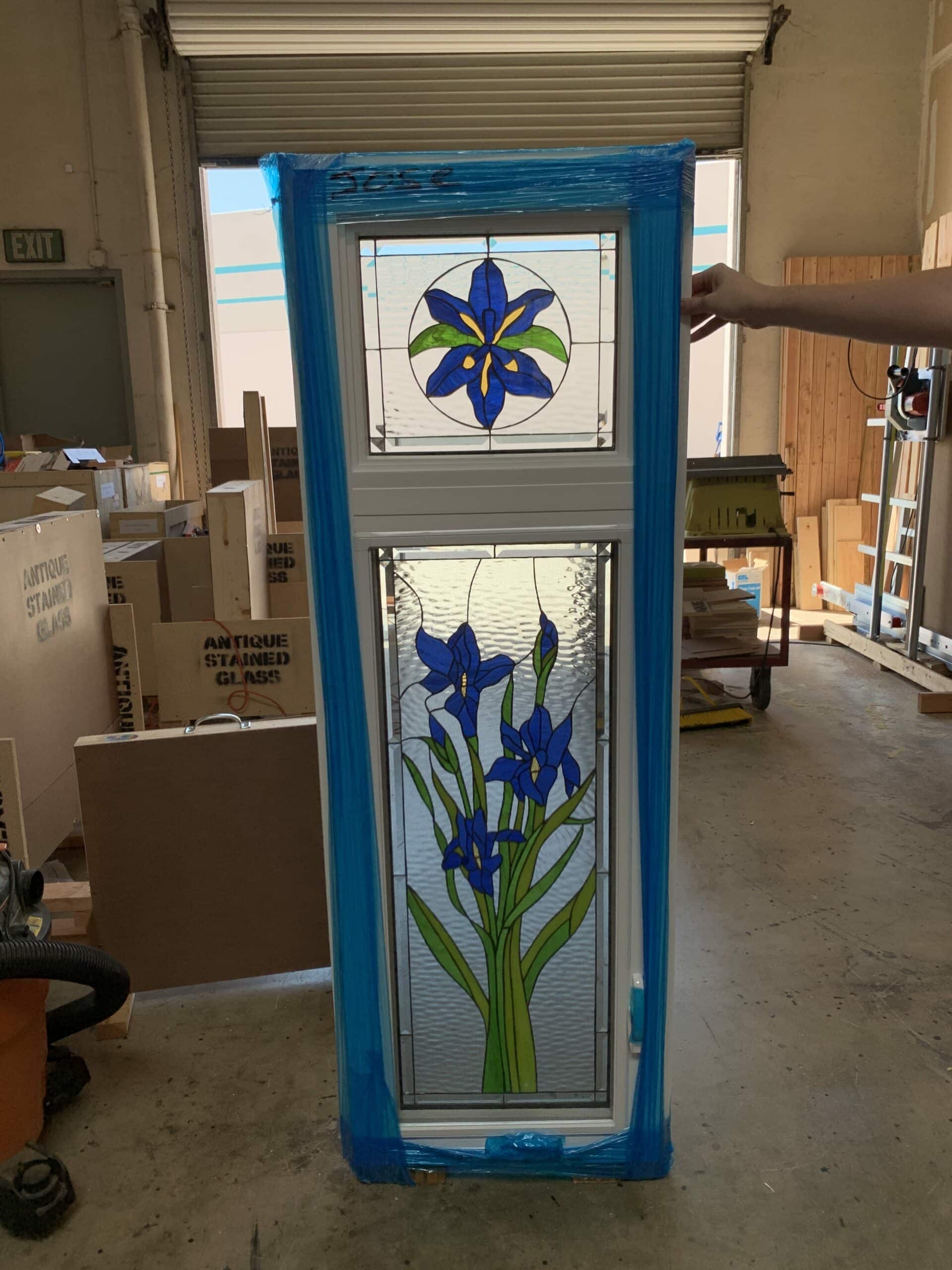 Waterglass Iris Stained Glass Window Panel Easy Install