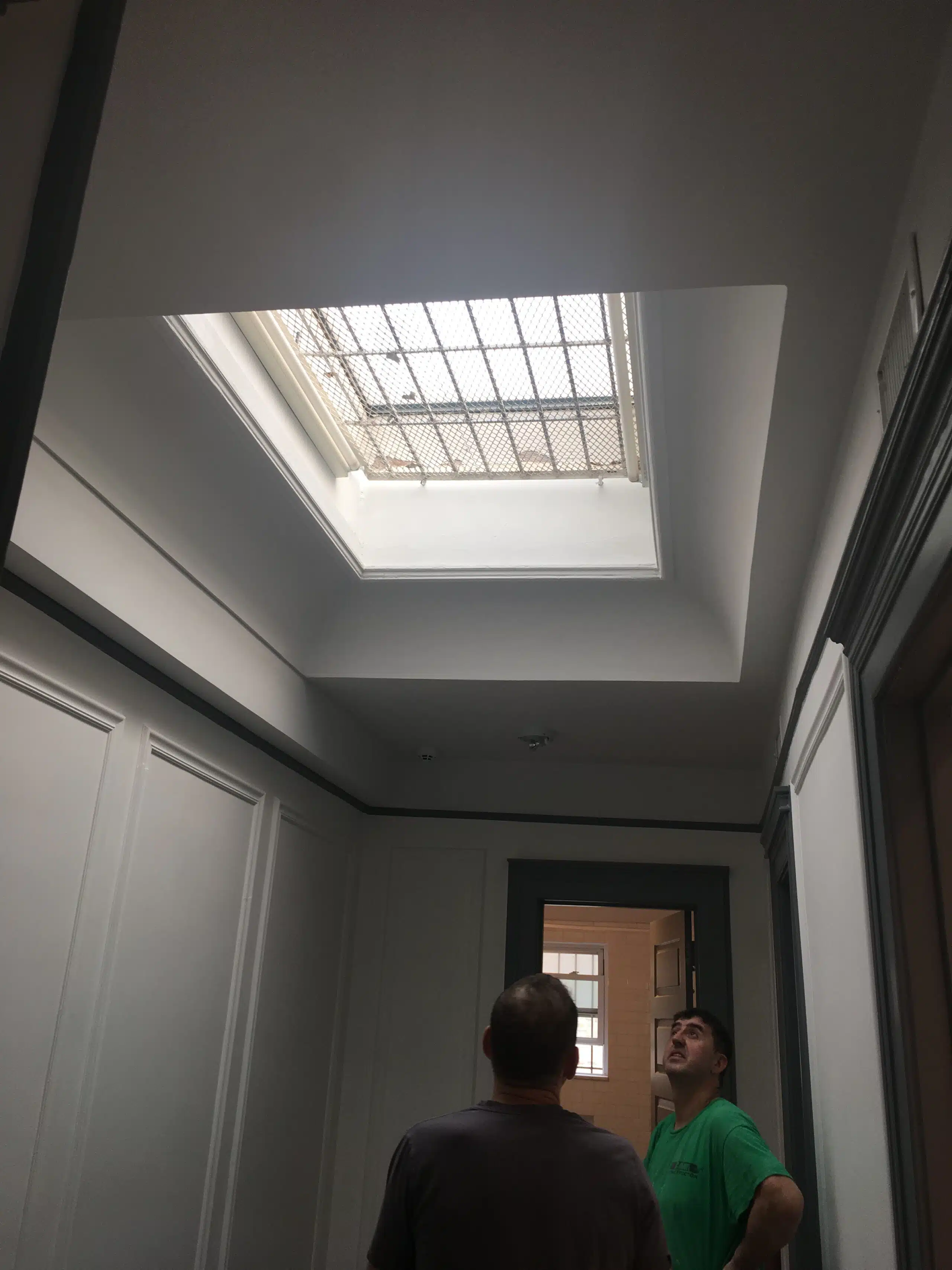 Wow! Large skylight insulated in clear tempered glass above a stairway (Before & After)