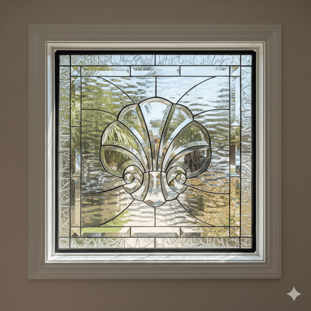 The charm of the seashore makes for stunning design in any home. Our all clear beveled scallop shell stained glass window panel will be the perfect finishing touch, allowing you to cultivate a cultured look with geometric flair. It gives a nautical look with a classic and noble style, one that brings natural light to the forefront while maximizing your privacy in places like your pool house, master bath, spa, and more. With detailed cuts in this shell design, you’ll give your home more value and beauty while evoking the relaxing calm of the ocean.