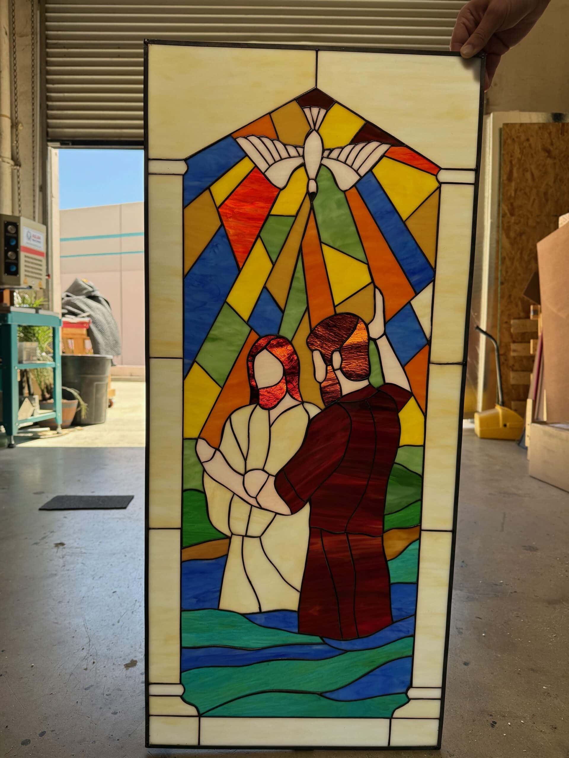 Stained glass arrived safely today. It is PERFECT! You did such an amazing job and it will be a beautiful focal point in his home. Thank you for all you did in making the process so easy. I'll send pictures as soon as it is displayed in it's place of honor! We couldn't be more thrilled!