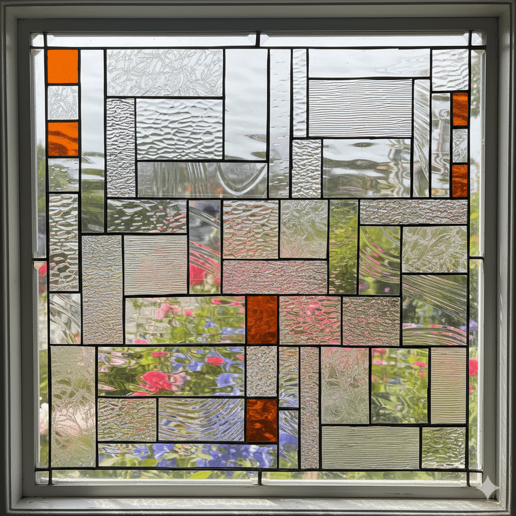 Here is the installation of our recent (Tuesday, 6/7) stained-glass delivery. This project achieved the goal of permitting light and, yet, ensuring privacy. Another goal was retaining visual access to the sky and rooftops from a Loft Studio plus having access to the mechanics of the windows. We are excited by the result.