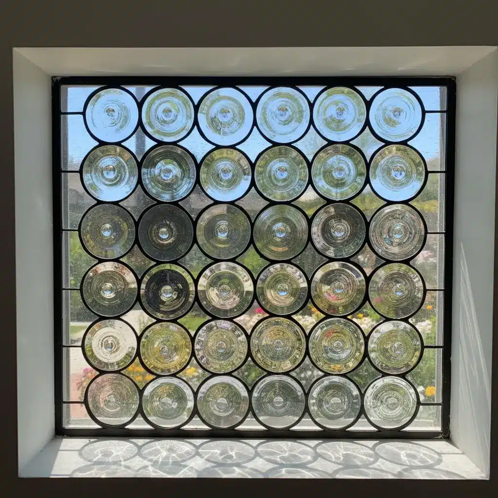 Clear Rondels Roundels Bottle Bottom Hand Spun Leaded Glass Window