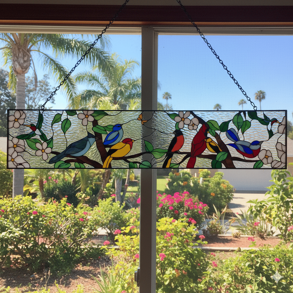 Attached please find a photo of the stained glass window you made for us, hanging as intended in the window frame.