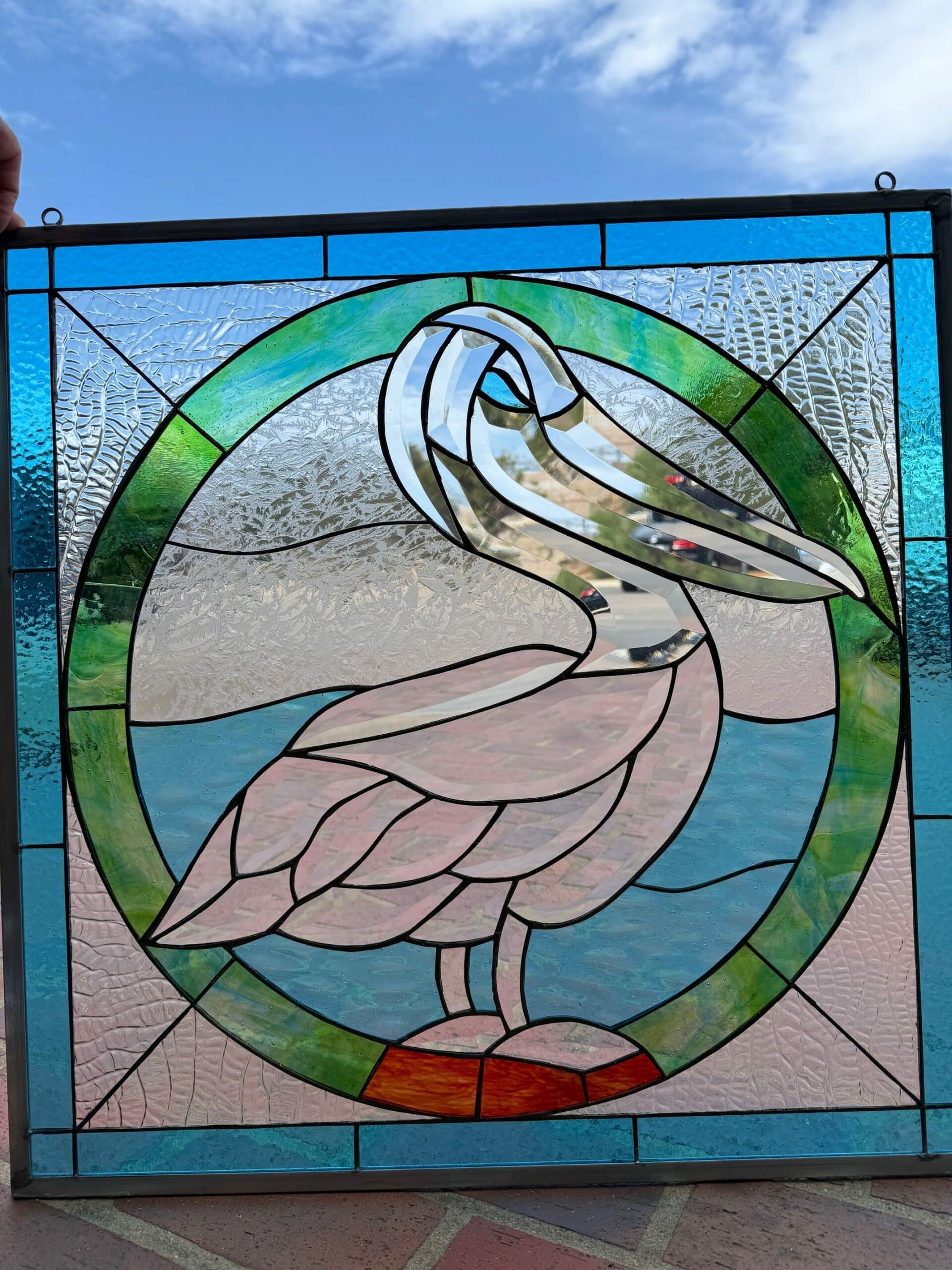 Exquiste Beach/Ocean Beveled Pelican Stained Glass Window Panel #2