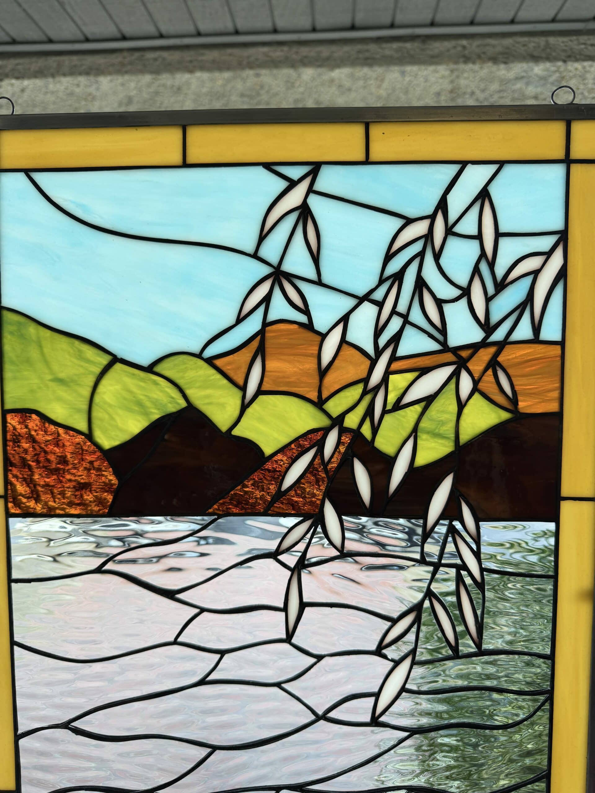 Attached please find a photo of the stained glass window you made for us, hanging as intended in the window frame.