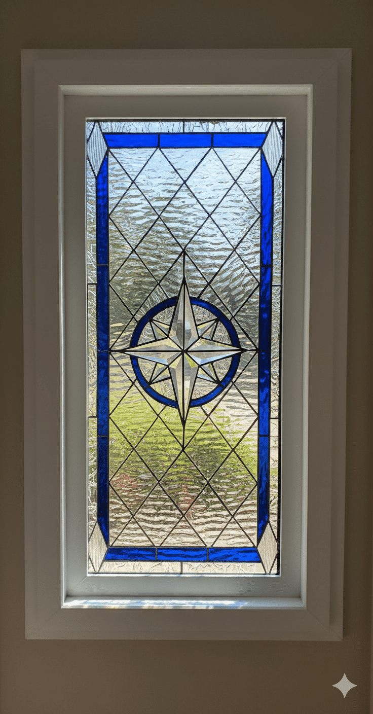 Hi Rae. I’m delighted with my new stained glass window which was just installed this morning. Rather than removing the existing frosted glass window, my contractor decided to build a white wooden frame around the stained glass to secure it directly in front of the existing frosted glass window. That way we didn’t risk damaging your beautiful piece or worrying about the window leaking in the future. Since this window is in the second floor and not really visible from the street, this method was fine with me as it looks great from inside our guest bedroom which is all I cared about. Now it looks like a piece of art on the wall!